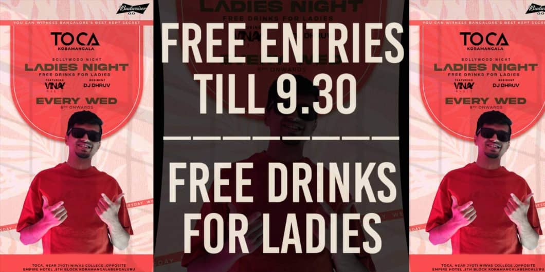 Free Drinks For Ladies From 08:30 PM To 9:30 PM